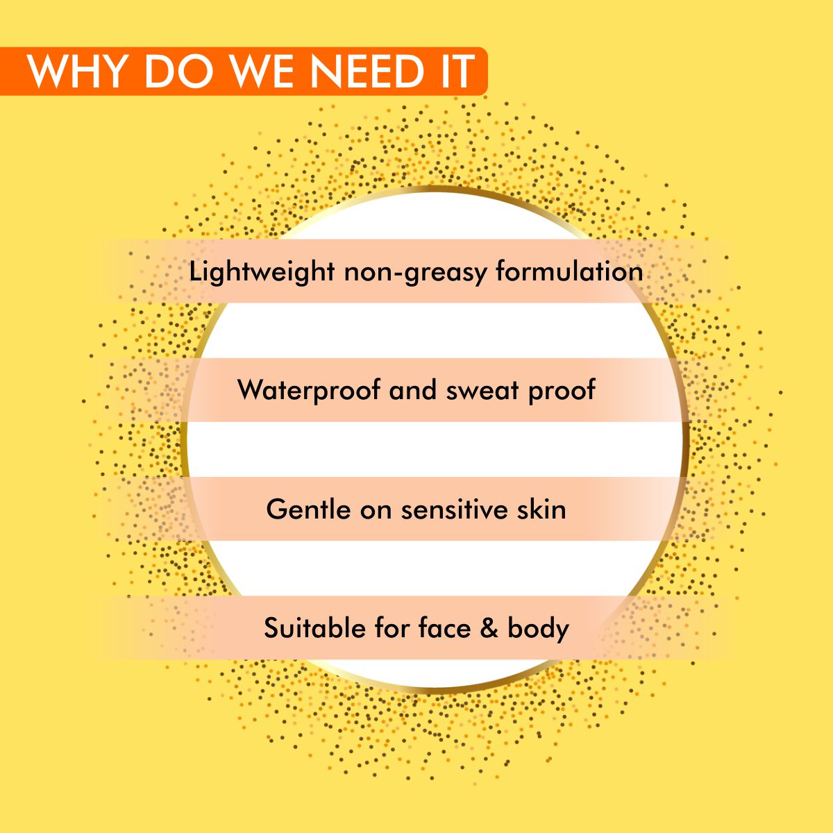 - Apply generously on face & exposed skin before sun exposure